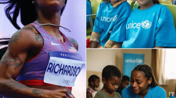 A viral social media post claiming that American sprint star Sha’Carri Richardson has officially become a UNICEF Global Ambassador and donated millions of dollars to help poor children has captured widespread attention across Facebook and other platforms. The post, accompanied by striking images of Richardson on the track and smiling children wearing UNICEF shirts, has generated strong emotional reactions, with fans praising what they see as a powerful example of compassion and global responsibility from one of athletics’ most recognizable figures.